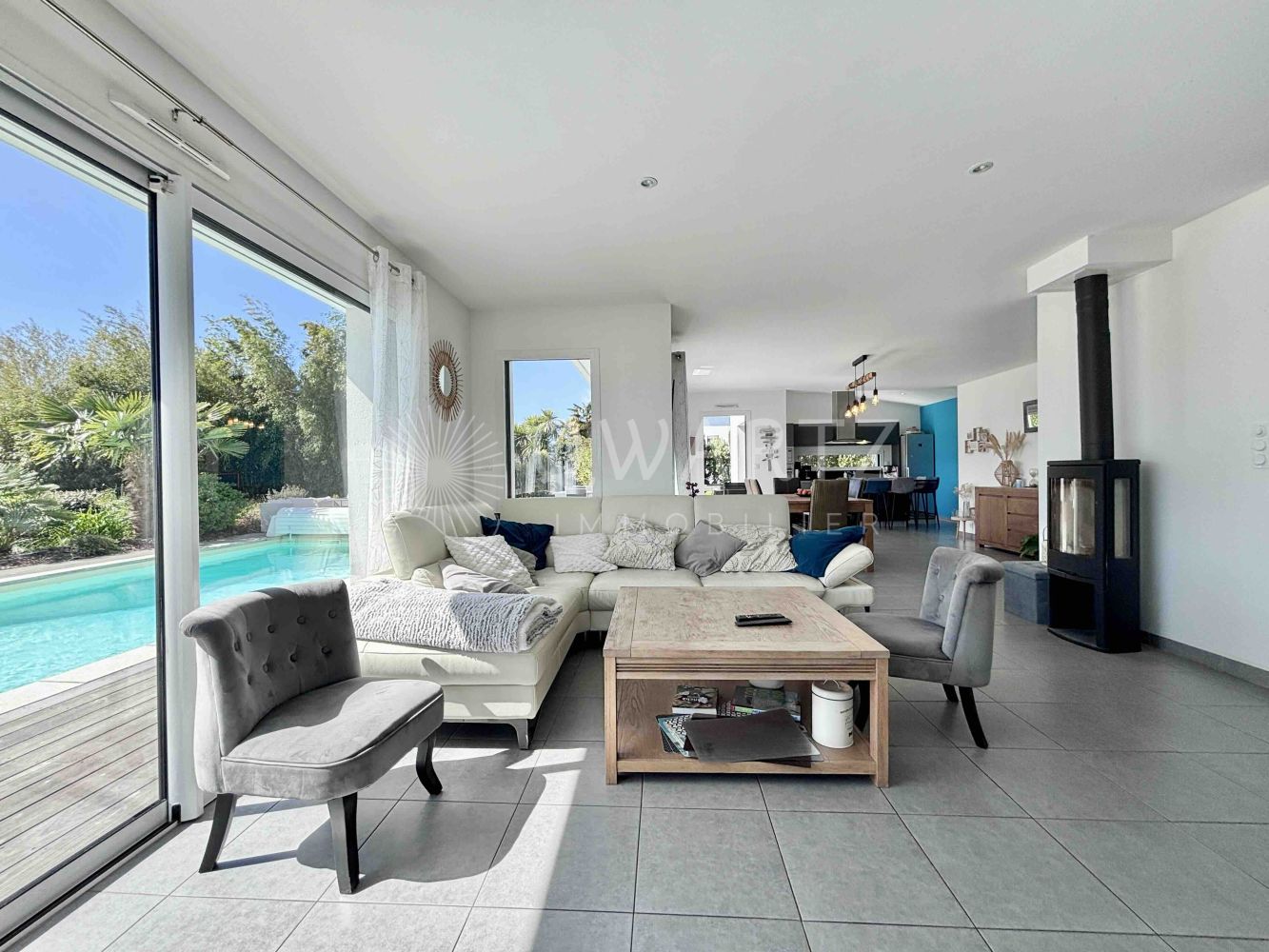 En exclusivité, QWARTZ Immobilier vous présente "Charline", maison contemporaine en excellent état de 185 m2, agrémentée d'une belle piscine orientée au sud-ouest.