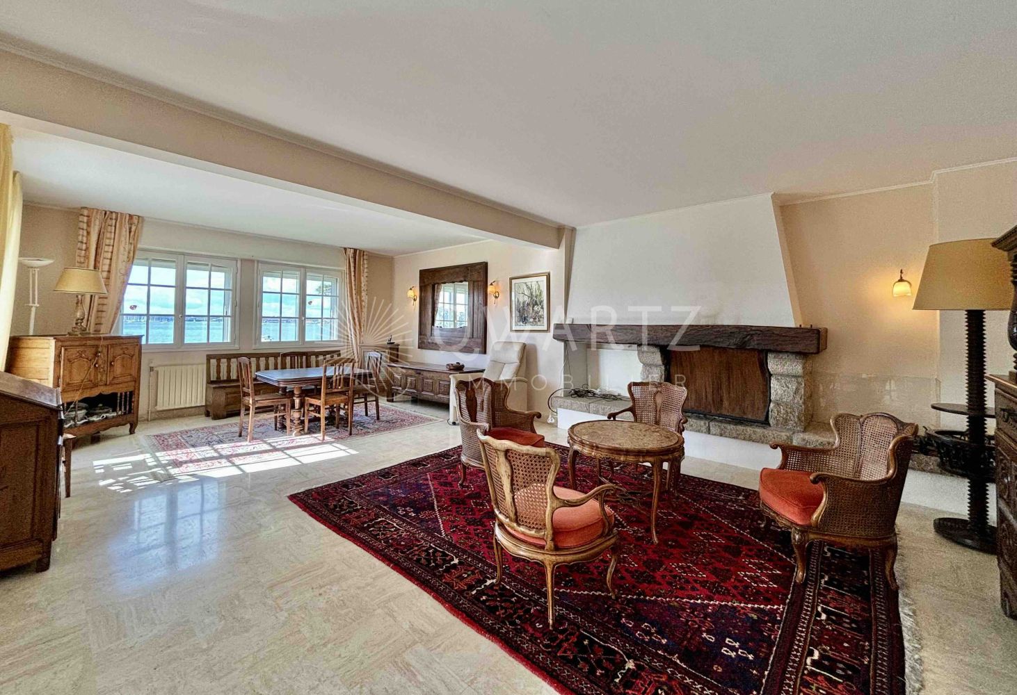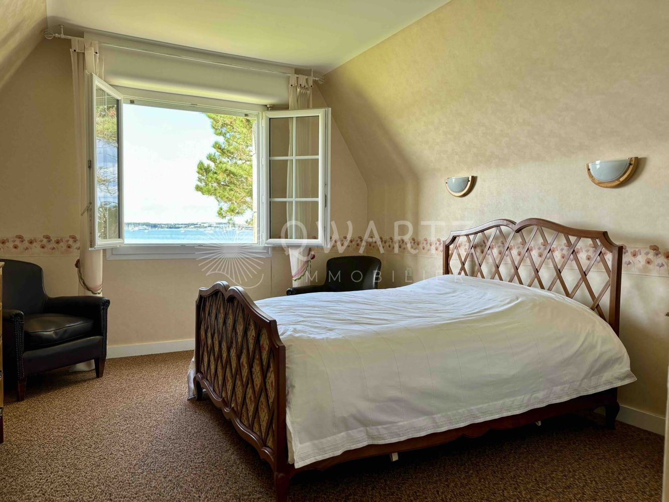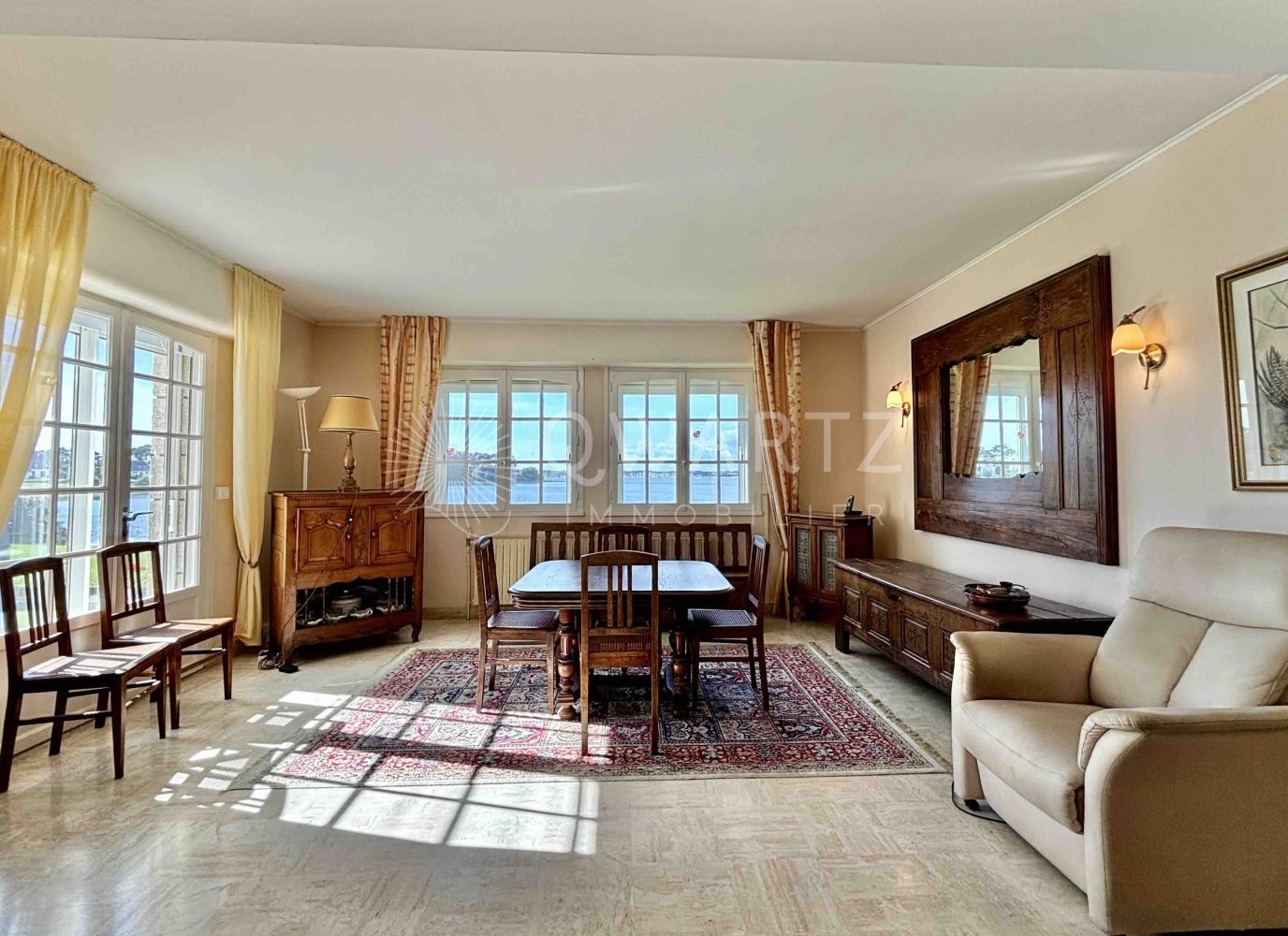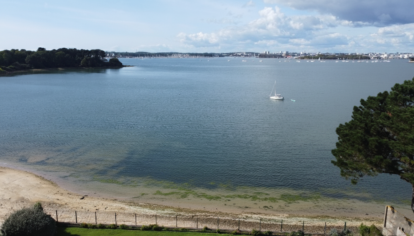 Exceptionnel : une vue incroyable sur la mer et sur l'activité nautique de la rade de Lorient depuis sa terrasse et ses pièces de vie, un accès direct à la plage et la mer depuis son grand jardin arboré et paysager, des volumes généreux pour accueillir famille et amis...